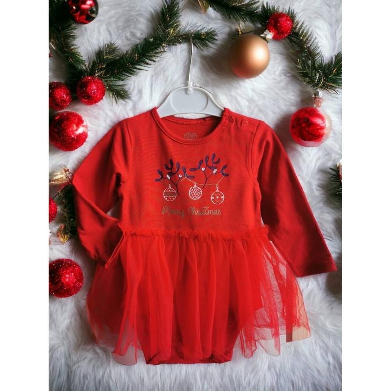 Замеры: ===РОСМЕР 74==== длина полная 40 см длина до конца фатина 33 см ширина 23 см плечи 20 см рукав от плеча 26 см Платье-боди Материал хлопок, фатин на плече застегивается на кнопки внизу также закрывается на кнопки Производитель Польша