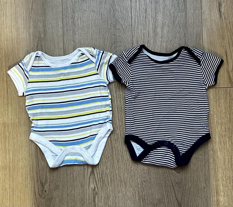 Боди для мальчика 6-9 месяцев. Темно синий в полоску - Primark, голубой- George. В идеальном состоянии