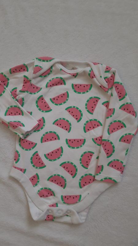 Новенький бодік з довгим рукавом на дівчинку 6-9міс. Довжина по спинці до памперса 38см, довжина рукава з плечем 28см, ширина під пахвами 24см.