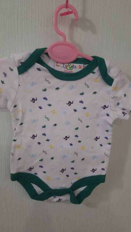 Новенький бодик на ребенка от 0-3мес. Длина по спинке до памперса 29см, ширина подмышками 20см.