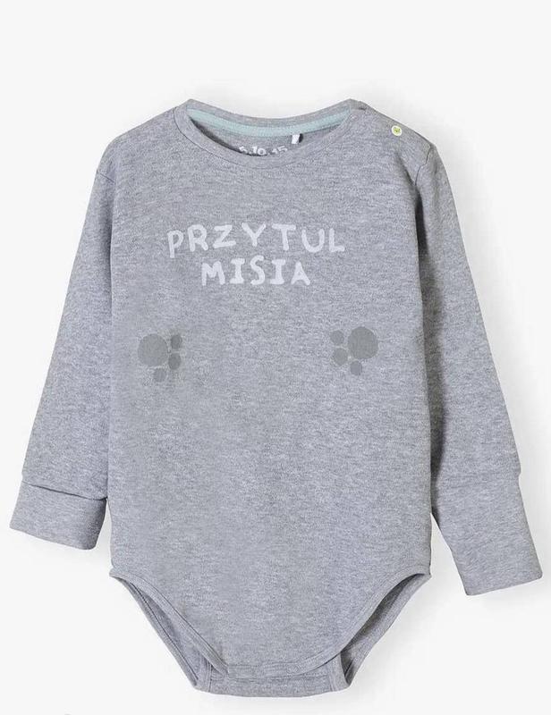 Детский боди<Обойки мишки> Бренд 5.10.15 Польша Сама ткань очень приятная на ощупь и хорошо пропускает воздух. Производитель позаботился о мельчайших деталях, включая удобную застежку - застежки позволяют быстро и комфортно расстегиваться и застегиваться. Также стоит обратить внимание на цвет и дополнительные украшения – детское боди серое с шуточной надписью и отпечатками лап мишки на фоне, что делает наряд очень милым. Это отличный вариант, если вы ищете качественную детскую одежду, которая подойдет ко многим стилям вашего ребенка склад - 80% бавовна. 20% полиэстер при потребі заміри надам размер 56