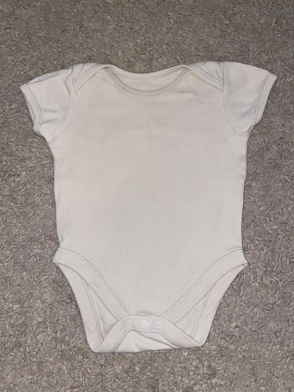 Боди бежевый. Размер 74, подойдет на 6-9 месяцев. Имеет круглую горловину, застежка на кнопки. Состояние хорошее, но на спине есть маленькая дырочка.