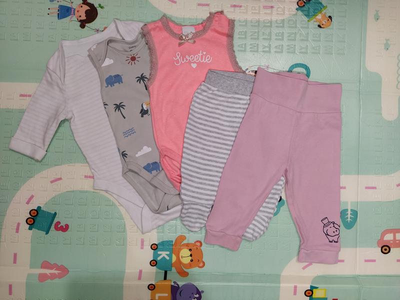 набір на дівчинку 62-68 см (1-3 міс) два боді з коротким рукавом, один з довгим, повзунки та штани ідеальний стан
