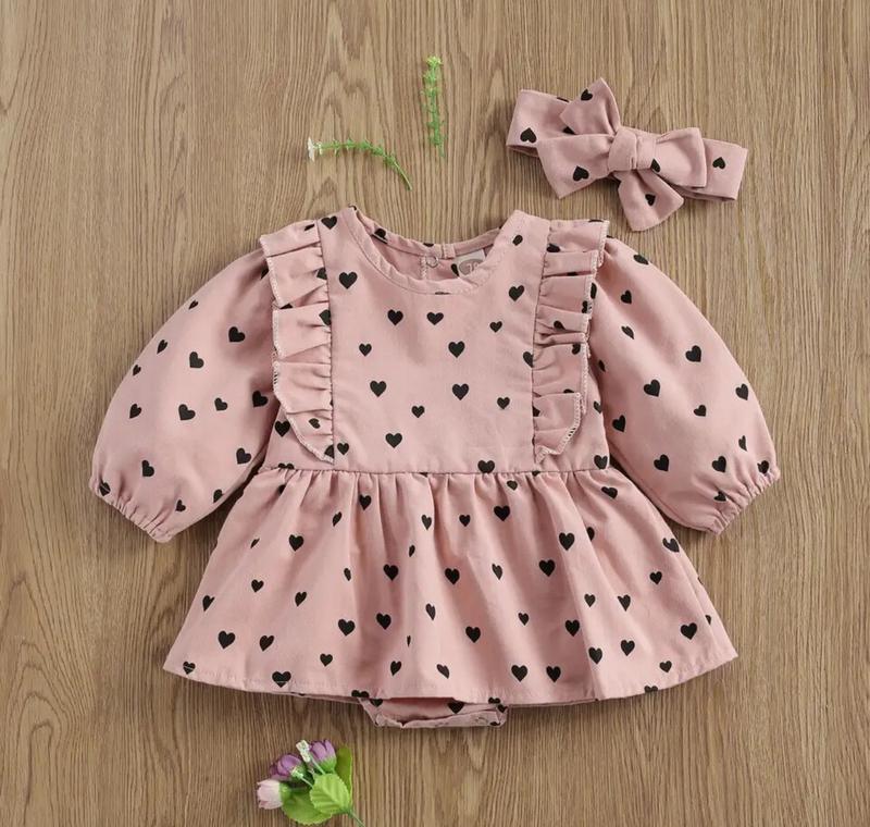 Праздничное платье боди и повязка с пышной юбкой в сердечки