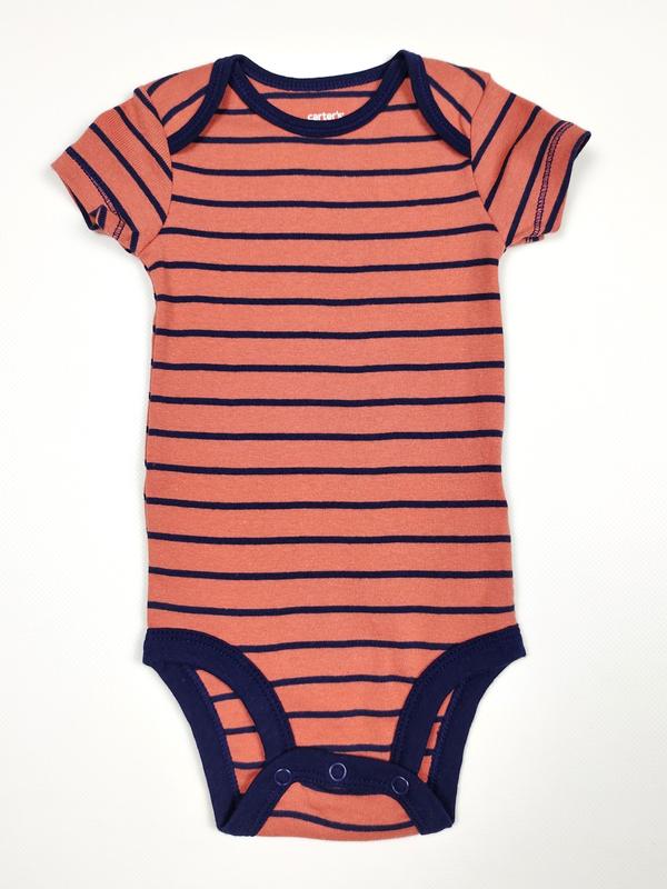 Качественный трикотажный детский боди. Бодик с коротким рукавом бренда Картерс, оригинал. 765110 Изготовлено из высококачественного, приятного к телу хлопка. Не садится после стирки, не теряет свою форму и цвет. Боди застегивается на кнопки внизу между ножками и имеет удобные запахи на плечах, что делает процесс переодевания очень удобным. Состав: 100% хлопок 3м (55-61см) 6м (61-69см) 9м (69-72см) 12м (72-76см)