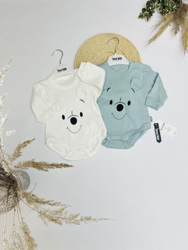 Базова річ в гардеробі вашого малюка. Боді декорований малюнком Вінні Пух і вушка- пришиті. Застібка- кнопки📌 Тканини 100 % коттон, мягенький. Приємний до тіла, виробник Туреччина 🇹🇷