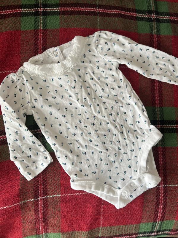 Очень милый фирменный бодик на девочку😍 С воротничком сетевым, принт мела цветочка