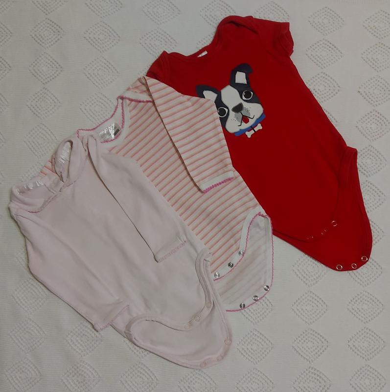 Три боди для красивой девочки 1.Красный боди с коротким рукавом и наклейкой песика, фирма baby club, на 80 см, состояние идеальное. 2.Боди полоскатый, длинный рукав от Ergee, ростом 74-80 см, состояние идеально 3.Розовый боди с воротничком от H&M, с длинным рукавом на 74 см., Цена за единицу 89 грн