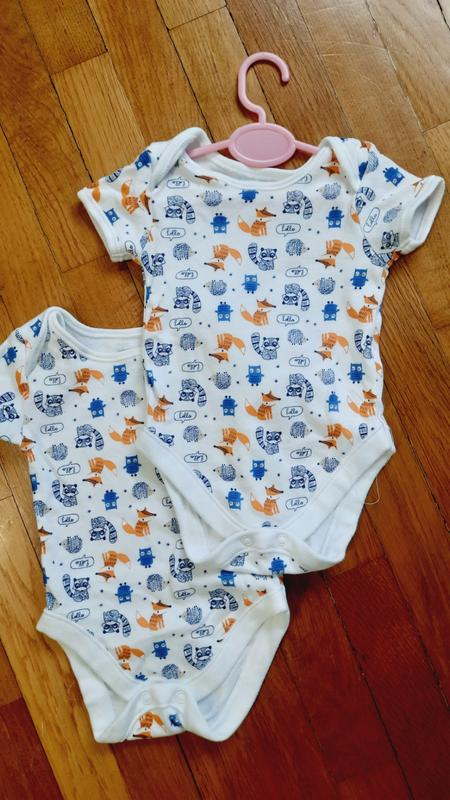 Новенький бодік на дитину від 0-3міс. Довжина по спинці до памперса 33см, ширина під пахвами 20см. В наявності є два боді. Ціна вказана за один .