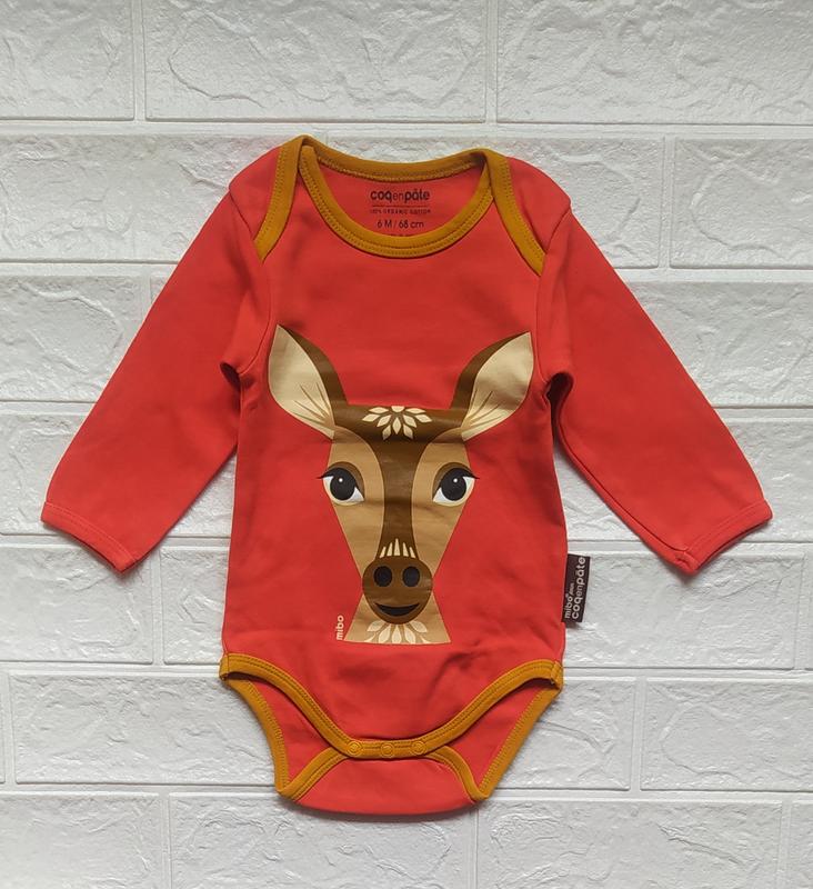 Оранжевый с олененок Размер 6 мес. Длина по спинке 38 см. Рукав от шеи 27 см. Ширина под руками 20 см.