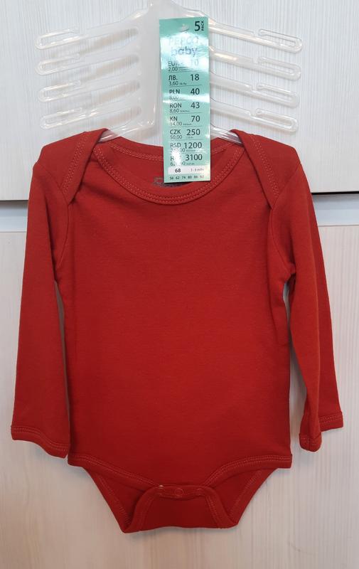 Новый боди. Размер 3-6 месяцев. Указан рост 68, но можно раньше, на 62 будет классно. Цвет - коричневый, кирпический.