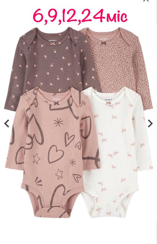 бодіки для дівчинки довгий рукав 100% бавовна Розмір 🔸6 міс( темного немає) 🔸9 міс-1 шт.(лео) 🔸12 міс 🔸18 міс( лео немає) 🔸24 міс . -1 шт(білий) Ціна за 1 шт