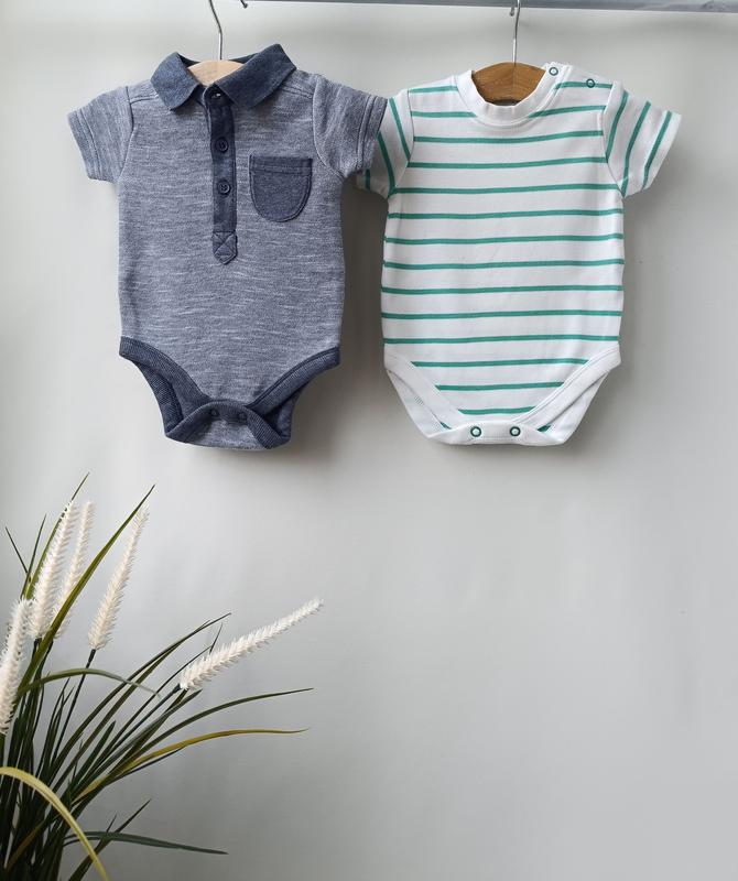 1)з воротом *цена: 45грн *Размер на бирке: 0-3 мес *Замеры:длина 33, шир 21 *стан: отличный 2) в полоску *цена: 45 грн *Размер на бирке:0-3 мес *Замеры: длина 33,5, ширина 22 *стан: отличный