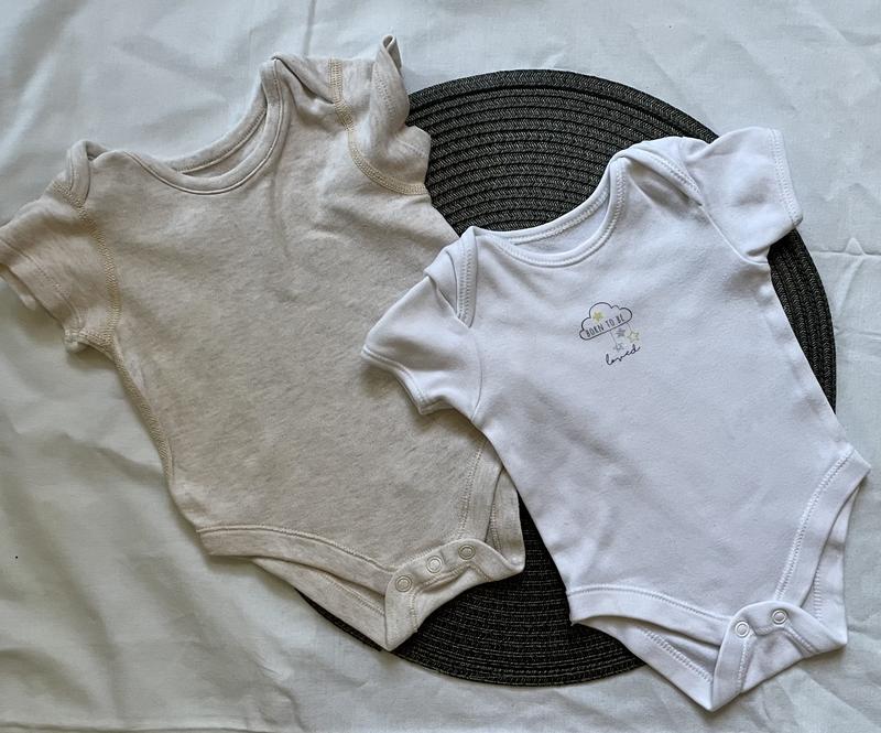 Бодіки для новонароджених 56 розміру. Бежевий «M&S». Довжина 31см. Білий «George». Довжина 31см. Ціна за два.