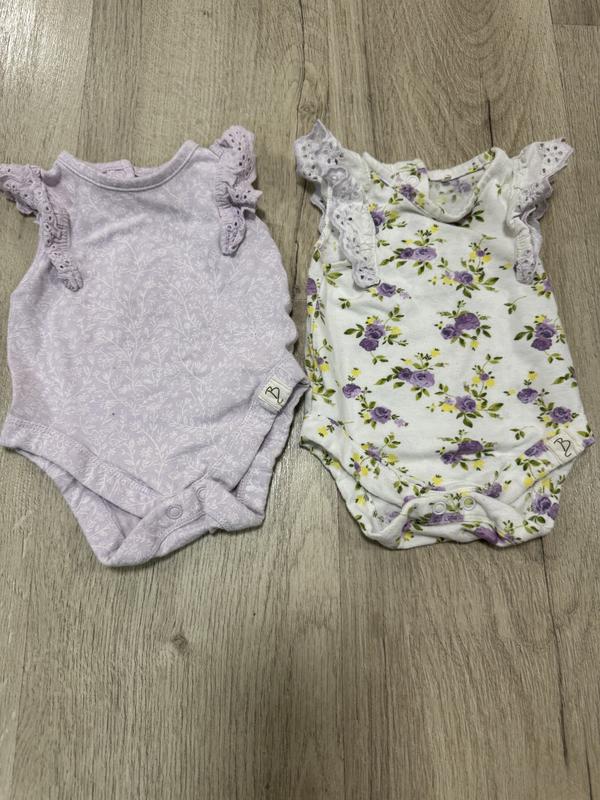Красивые бодики без рукав, на 0-3 мес. Состояние идеальное, имели много одежды, поэтому вещи носились по несколько раз.
