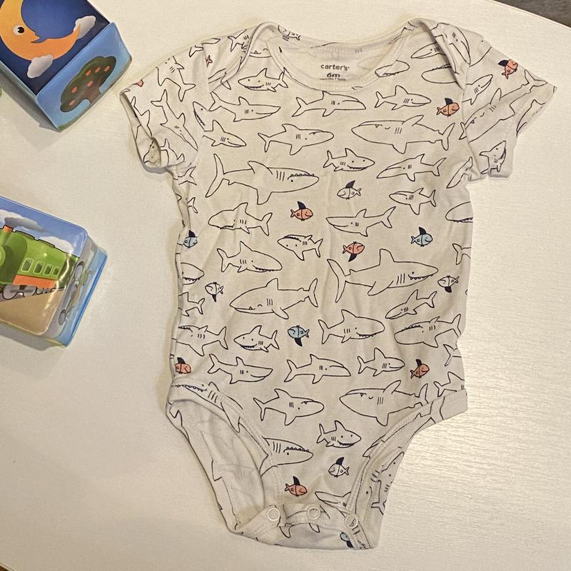 Боди на 6 месяцев, белый с акулами