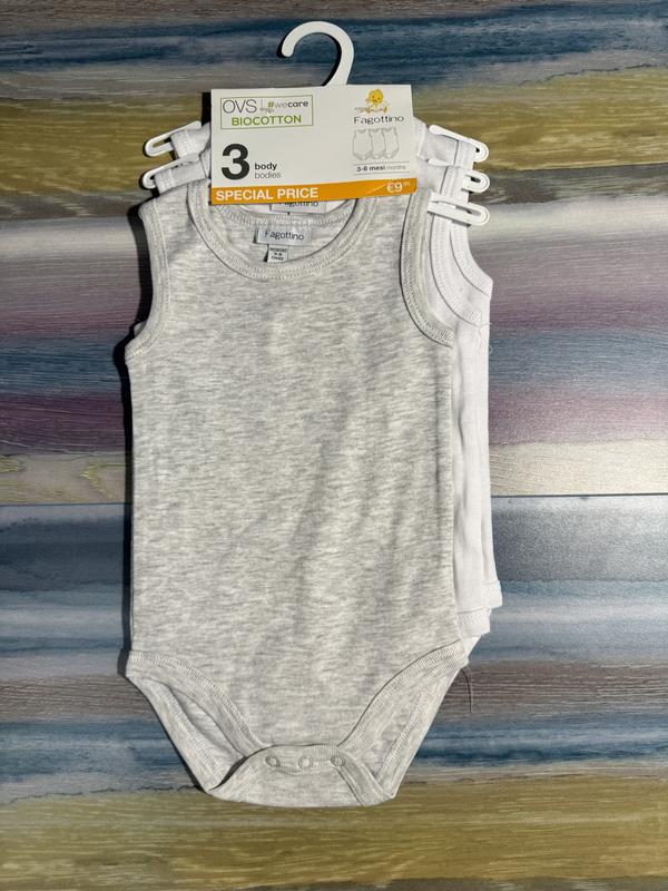 Один серый и два белых бодика. Цена за набор. Органический хлопок