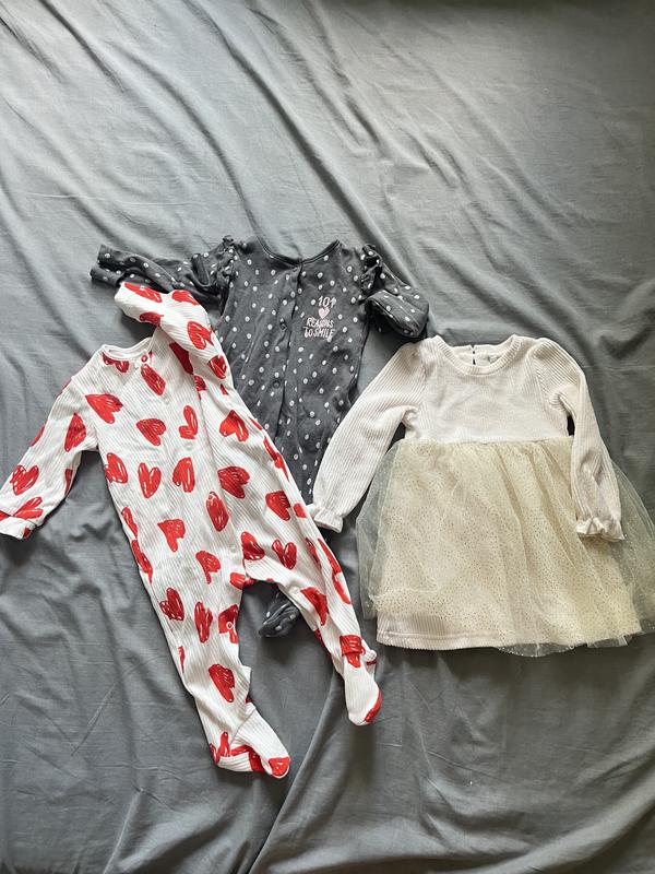 Боди в идеальном состоянии, дополнительно фотодам Белое в сердечках 6-9 мес 200грн одевали для фото некст Серое 3-6мес 150 грн george Платье 150 грн mangor 6-9 мес