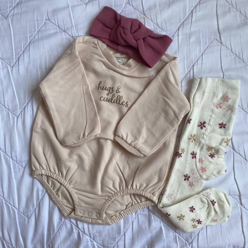 Набір для дівчинки 62 розмір Боді -двонитка Повʼязка Колготки