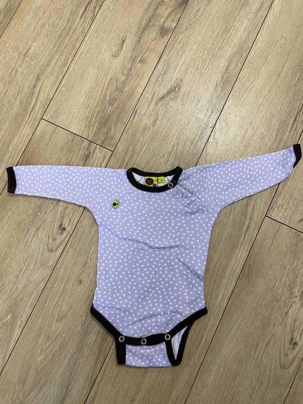 Мінімальне замовлення у продавця на 100 грн. Бузковий бодік (колір ближче до першого фото) у відмінному стані (трохи кашлатиться) на дитину до трьох місяців. Довжина виробу по спинці 36 см, напівобхват грудей 21 см, довжина рукава від пахви 19 см. Тканина бавовна тягнеться. Дешевше та більше товару на kupi-slona*pp*ua Модель 4372
