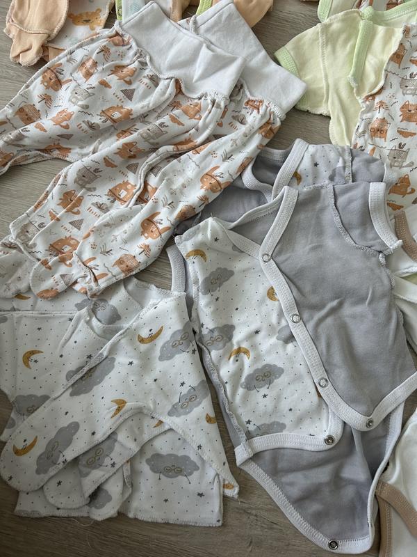 Дитячі речі розміру 56-62, у використанні не були тому стан ідеальний, тканина 100% бавовна. 20 позицій