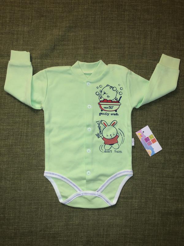 Боді з довгими рукавами В наявності 2 шт різного розміру: на зріст 68 та 74 см Стан: новий Тканина: бавовна Колір: салатовий