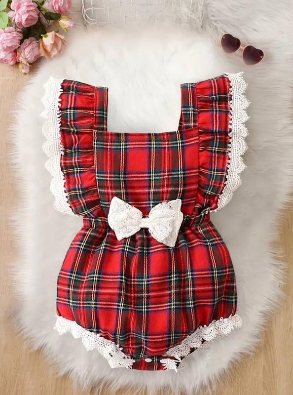 Боді на дівчинку в клітинку та мереживом. Колір - червоний. Розміри в наявності: 18-24 місяців (бюст - 54 см, довжина - 49 см, розмір талії - 46 см, розмір стегон - 62 см).