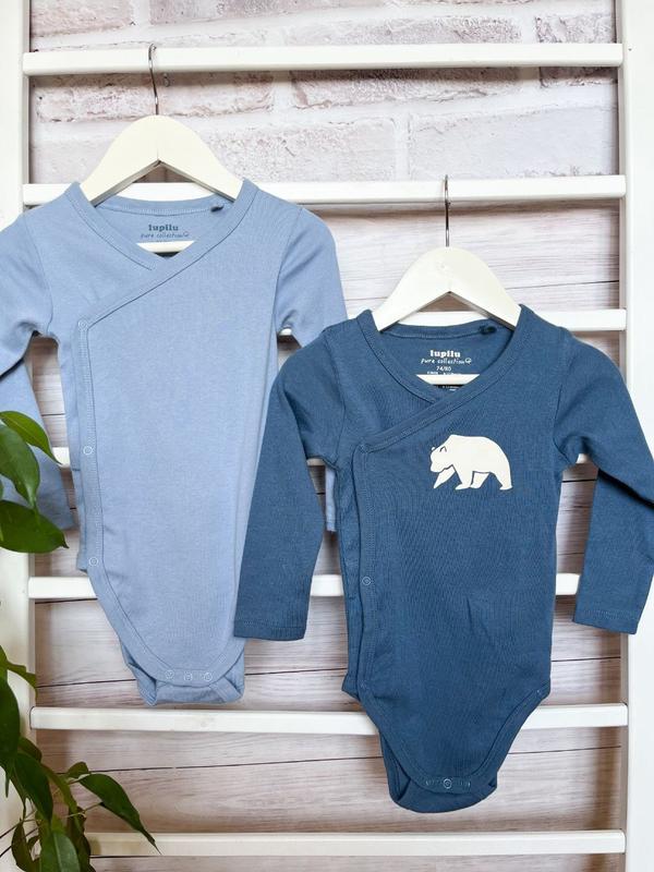 ✂️Материал: 100% органический хлопок🌱 📏Размер: 74-80 см✅️ 💰Цена: 285 изнанку/ комплект🔥 📝 Бодики на кнопках снизу и на запах. Цвет голубой и синий с белым медведем