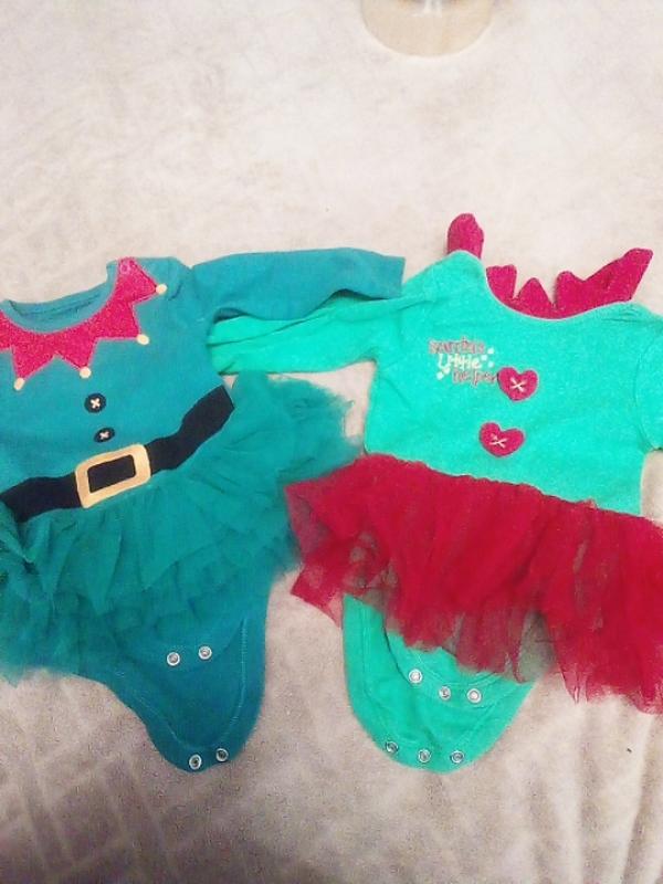 два новогодних бодика для девочки очень хороши для фотосессии или для домашнего праздника. размер 3/6, 6/9 так что отлично подойдет с четырех до восьми месяцев. цена за один