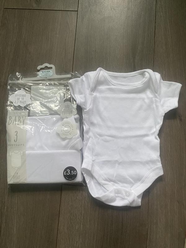 Набір боді з 3 штук білого кольору на короткий рукав на новонародженого у використанні не був. Ціна за 3 штуки.