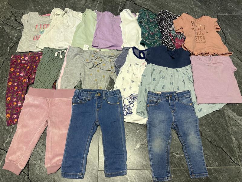 Большой пакет одежды для девочки. Все вещи в хорошем состоянии ( на одних джинсах и лосинках вытертые коленка) все остальное супер без пятен. Оба джинсов от Zara. 1 футболка, 3 маечка, 3 боди, 2 кофточки, 4 лосинок, 2 платья, 1 штанишки и 2 джинсов. Цена за все 350грн
