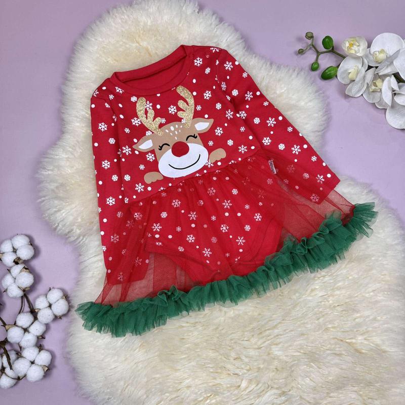 🎄Платье-боди Олень. Тканина двунитка з фатином. Рисунок - накат. Производитель Турция 📐Замеры: боди, без юбки 74 см-дл. 32 / полуобхват. 22/ рукав 24 80 см-дл. 35/полуобхват.24 / рукав 27 86 см-дл. 36/полуобхват. 24/ рукав 28 92см - длин. 38/полуобхват. 25/ рукав 29,5