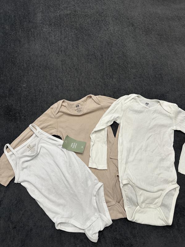 Продаю Бодики на защелку. Фирма hm. Размер 2-3 года ( всех) Набор : 2 длинный рукав ( бежевый, белый) + 1 бодик - маечка. Цена за набор 290 грн. Все 3 - совершенно новые. Продавались в упоке с другими, поэтому без броков