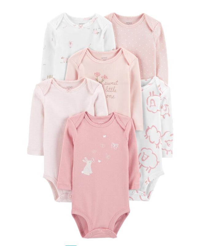 Carters комплект бодиков с длинным рукавом из 6 шт картерс боди bunny pink