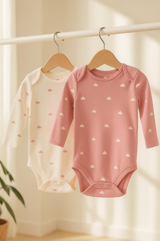 Зручне боді для дівчаток 👶 Довгі рукави оберігають від прохолоди, а ніжна тканина забезпечує комфорт. Милий принт з горошком, сердечками та хмаринками робить образ яскравим і веселим 🌸 Розміри: 56 см., 62 см.