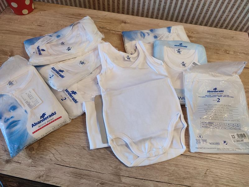 Боди майка на 6 мес- 4 упаковки по 2 штучки на 3 мес - 2 уп. по 2 шт на 36 мес - 1 штучка с рукавчиком цена за 1 упаковку