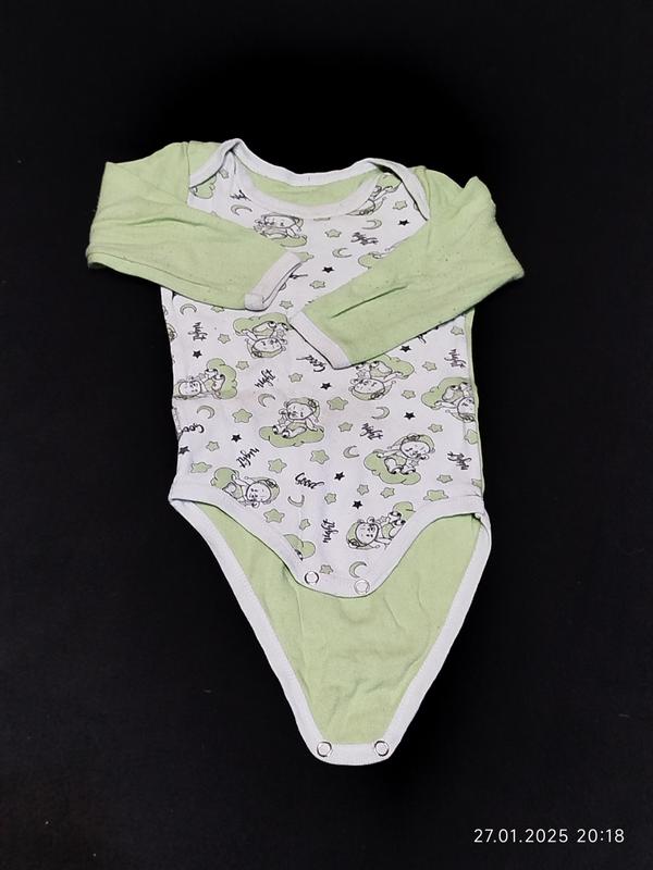 Минимальный заказ у продавца на 100 грн. Хорошенький качественный бодик с длинным рукавом фирмы Малютка на ребёнка 3-6 месяцев, в хорошем состоянии, немного кашлатится и есть на рукаве маленькое бледное пятнышко. Длина изделия по спинке от плеча 41 см, полуобхват груди 20 см, длина рукава 22 см. Ткань хлопок, тянется. Модель 5734