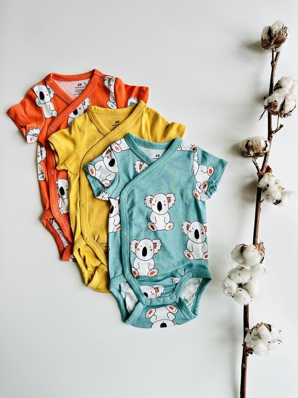 Набор разноцветных детских бодиков с принтом от бренда H&M Размер в наличии: ✅ 62 см (2-4 мес) (в наборе распаровка - 2 боди 62 размера, 1 боди 68 размера) ✅ 68 см (4-6 мес) ✅ 74 см (6-9 мес) Состав: 100% хлопок #000133