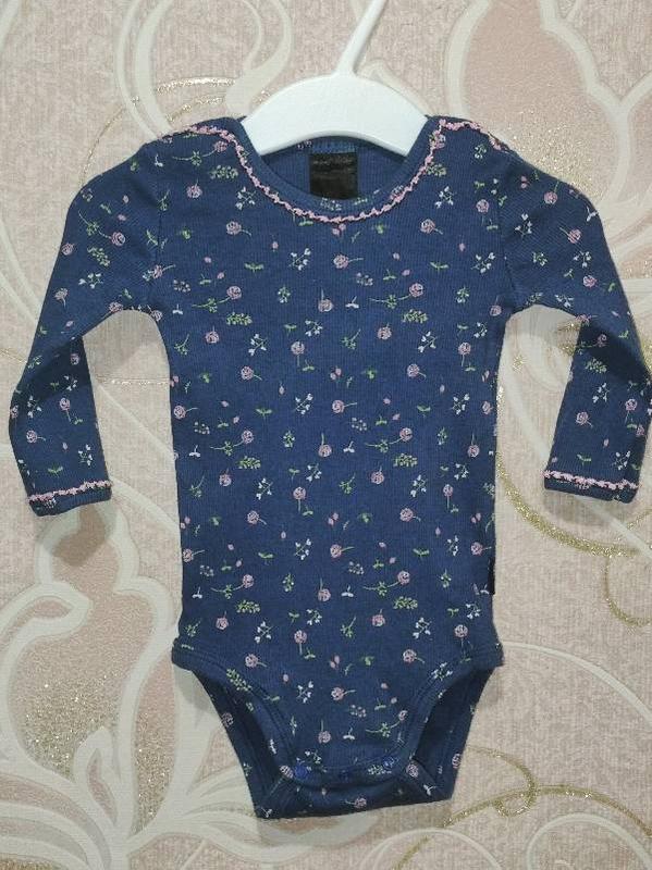 Минимальный заказ у продавца на 100 грн. Приятный к коже джинсового цвета в мелкий цветочек бодик,с длинным рукавом. на кнопках в отличном состоянии на новорожденного мылыша до трех месяцев. Длина изделия по спинке от плеча 27 см, полуобхват груди 18 см, длина рукава 20 см. Ткань хлопок, тянется. Страна производитель: Германия, фирма "SCHIESSER". Модель 83