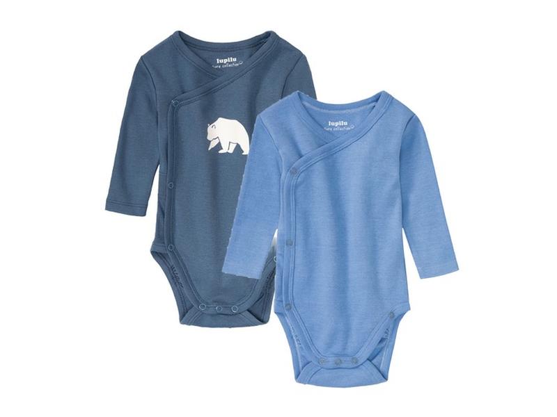 Комплект боди с запахом от Lupilu Новый 🆕 из бикрой. 🍃Размер: 6-12 месяцев / 74-80 см ………………………………………………………………………………… Приятная трикотажная ткань из органического (гипаллергенного) хлопка. Сертифицирована международной системой тестирования текстильных изделий-Oeko-Tex Standard 100.