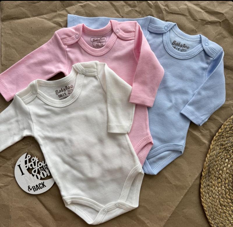 Боди – производство Турция! Снизу застегивается на кнопки. 100% бавовна. Качественный и приятный на ощупь. Размеры: 56 – (по бирке 0-1) - длина 31 / рукав 18 62 – (по бірці 3) – 33 / 19 68 – (по бірці 6) – 35 / 21 74 – (по бірці 9) – 36 / 23 Цена: 335 грн КрохпельКа