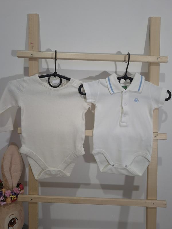 Боди с воротничком на 3 мес. от Benetton Боди белый в рубчик от Disney с длинным рукавчиком на 3-6 мес Ціна за комплект