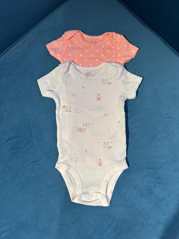 Детский боди с коротким рукавчиком от Carter's (состояние хорошо) Коралловый боди на - 6 месяцев Белый с барашками на - 9 месяцев Цена за набор- 200 грн (можно отдельно)