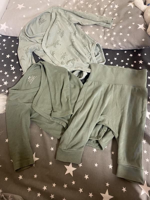 Набір боді зі штанами на широкій резинці. На одному боді незначний дефект (стрілка трохи від кнопки пішла) на фото показала. 62 розмір