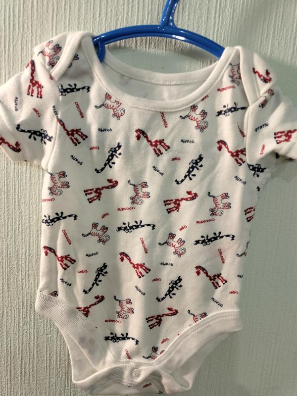 Новенький бодик на ребенка от 0-3мес. Длина по спине до памперса 32см, ширина подмышками 20,5см.