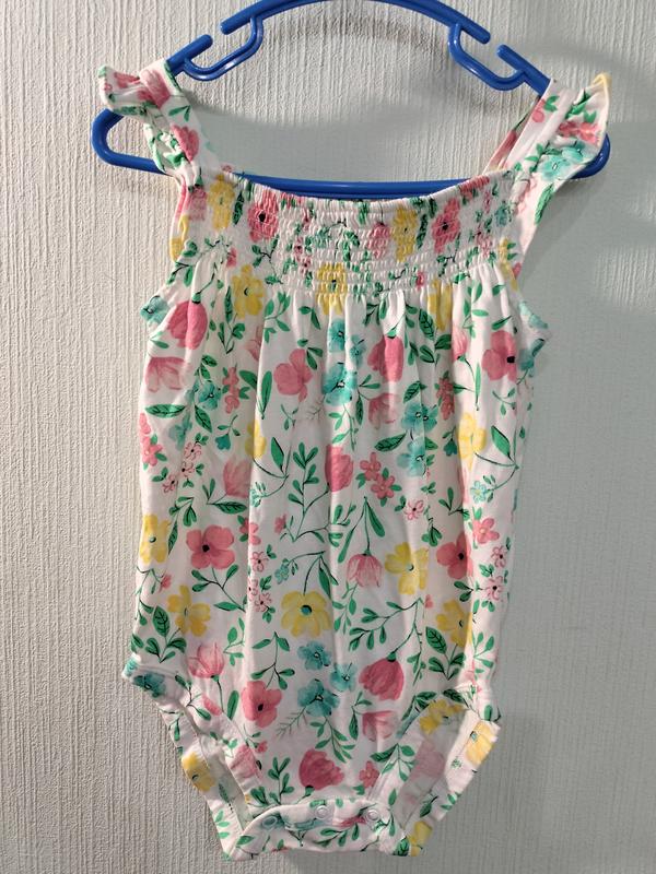 Новенький летний бодик на ребенка от 18-24мисс. Длина от плеча до памперса 47см, ширина подмышками 27см.