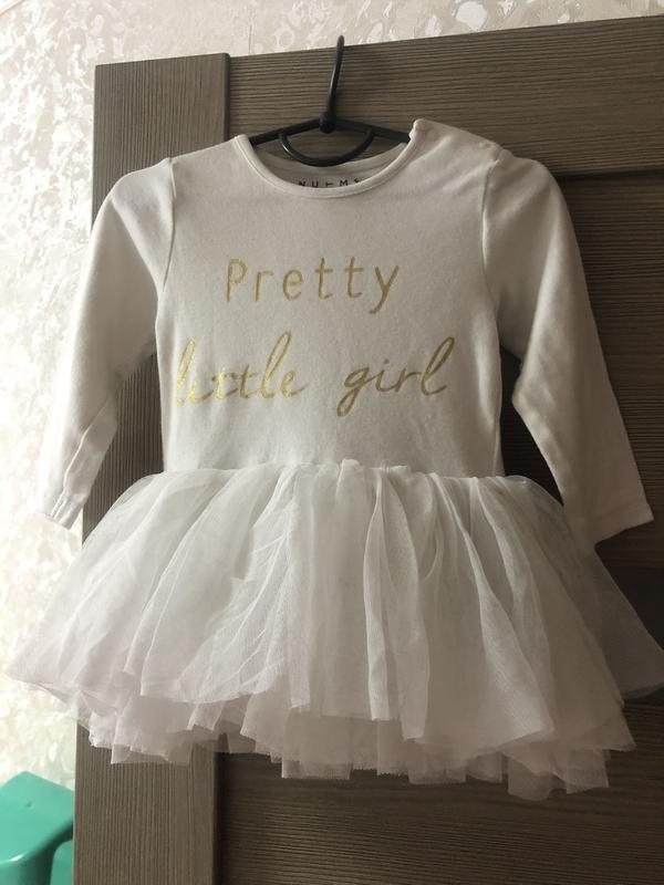 Дуже красиве платтячко на дівчинку.100% котон.Юпочка фатінова.На боліку пише «Гарненька маленька дівчинка».Вік 12-18 місяців.Зріст 80-86см.Дуже класне.Закльопкі всі гарненько застібаються.Платтячко біленьке.
