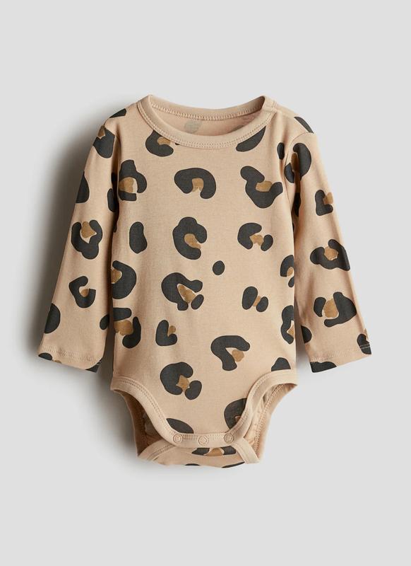 Хлопковое леопардовое боди с длинным рукавом