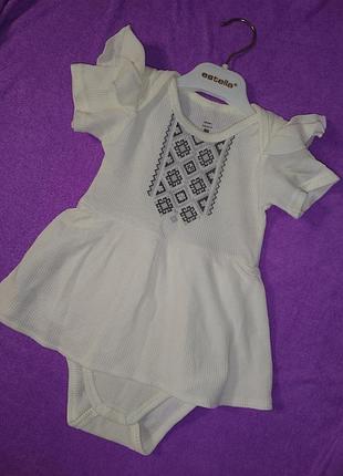 Боді для дівчинки, в ідеальному,майже новому стані. До боді йде пов'язка бантик. Дуже приємне на дотик, легеньке, колір кремовий з машинною вишивкою.
