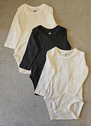 Бодіки H&М, нові, без паперової бірки. Ціна вказана за 1 шт. В наявності: Білий 2 шт - 68 1 шт - 80 1 шт - 92- продано Чорний 1 шт - 68